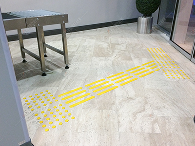 Hissedilebilir yüzey uygulamalarındaki kılavuz çizgi hareket yönüne paralel döşenerek gidilecek noktaya güvenli şekilde varmalarını sağlamaktadır. Hissedilebilir yüzey uygulamasındaki uyarıcı yüzey kesik kubbe şeklinde kabartma yüzeye sahiptir ve engelli bireyin yükseklik farkları, merdiven, kapı gibi yerlerde uyarılmalarını sağlamaktadır.